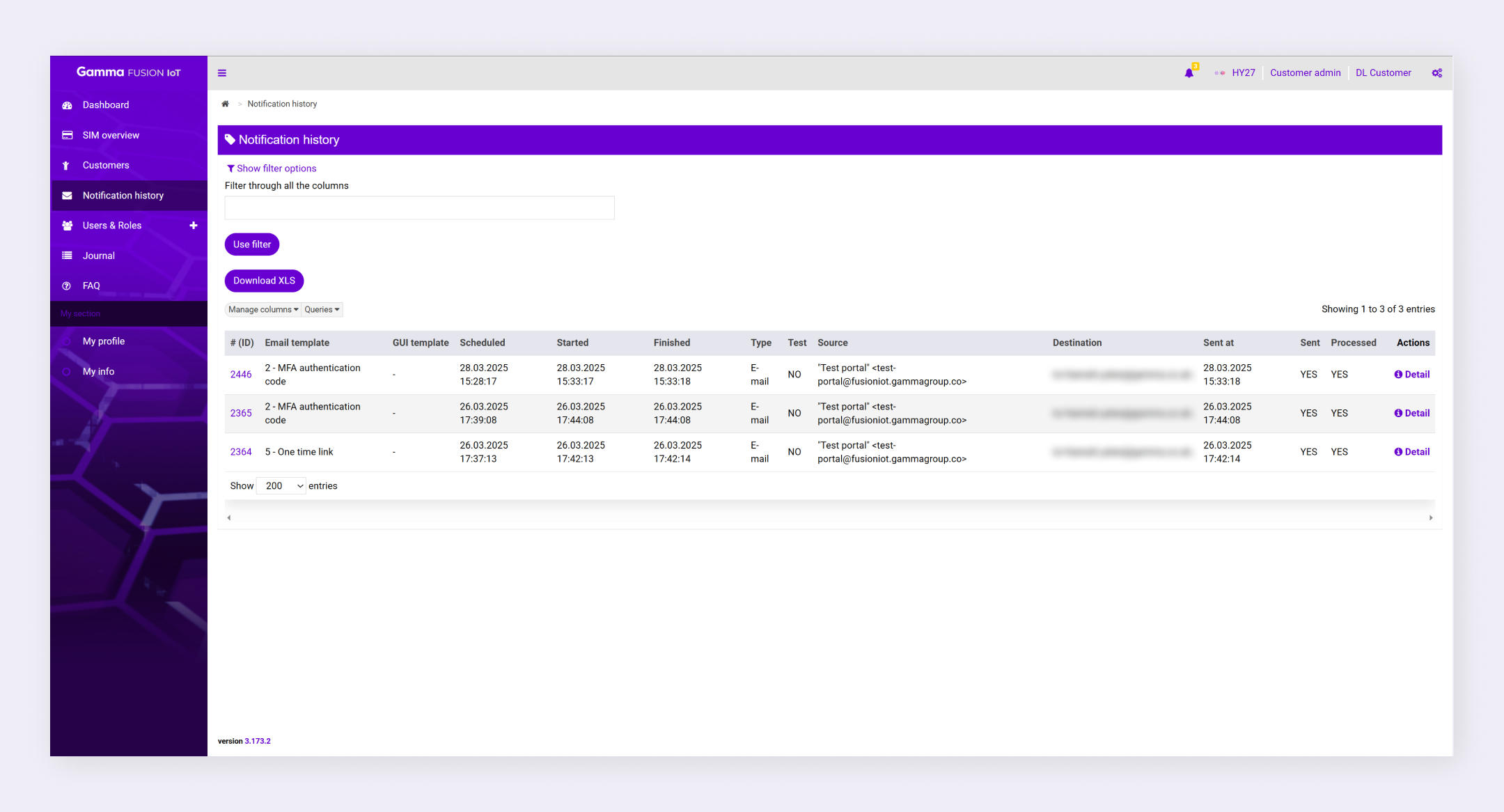 Customer admins can track notification history which lists every notification that is triggered in the portal. This enables you view the notification that was sent, when it was sent, and the recipient.