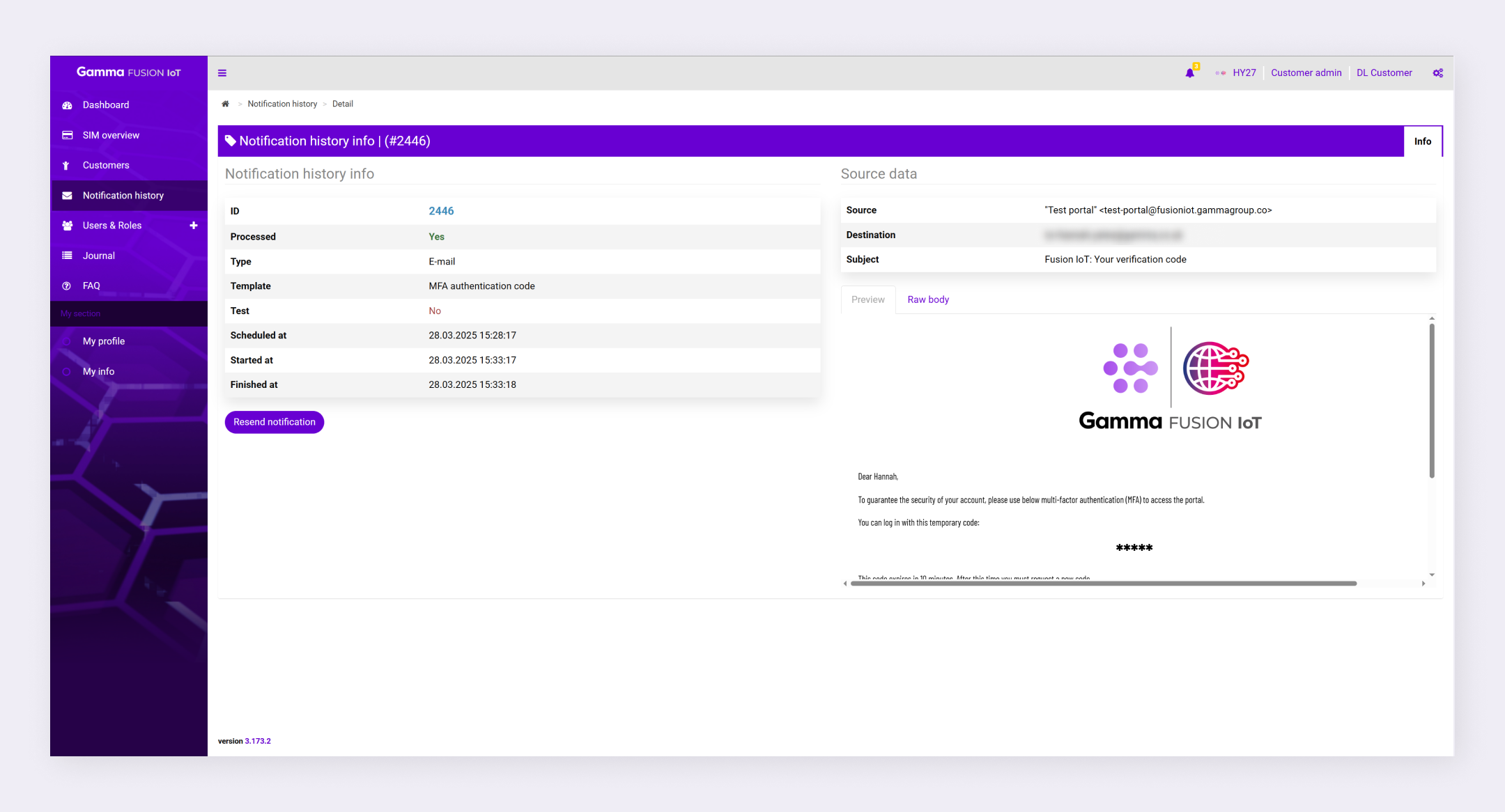 The portal displays the notification details.